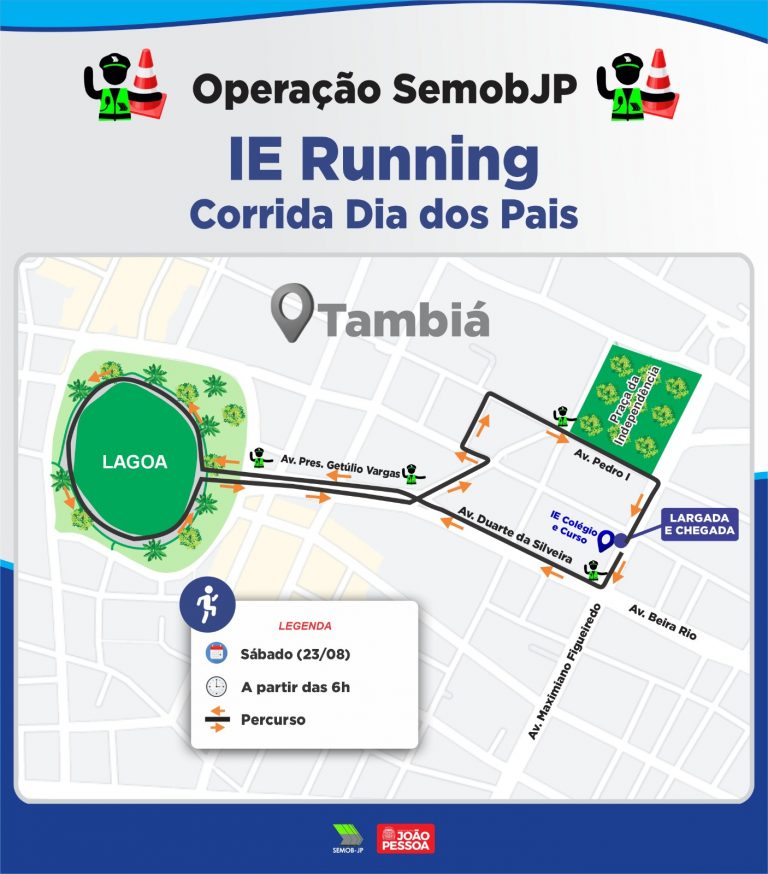 A Superintendência Executiva de Mobilidade Urbana de João Pessoa (Semob-JP) montou um esquema especial para garantir a segurança viária e a fluidez do tráfego durante dois eventos esportivos na Capital: a corrida IE Running (Corrida do Dia dos Pais), neste sábado (23), e a Volta Ciclística Tour de Jampa, no domingo (24).