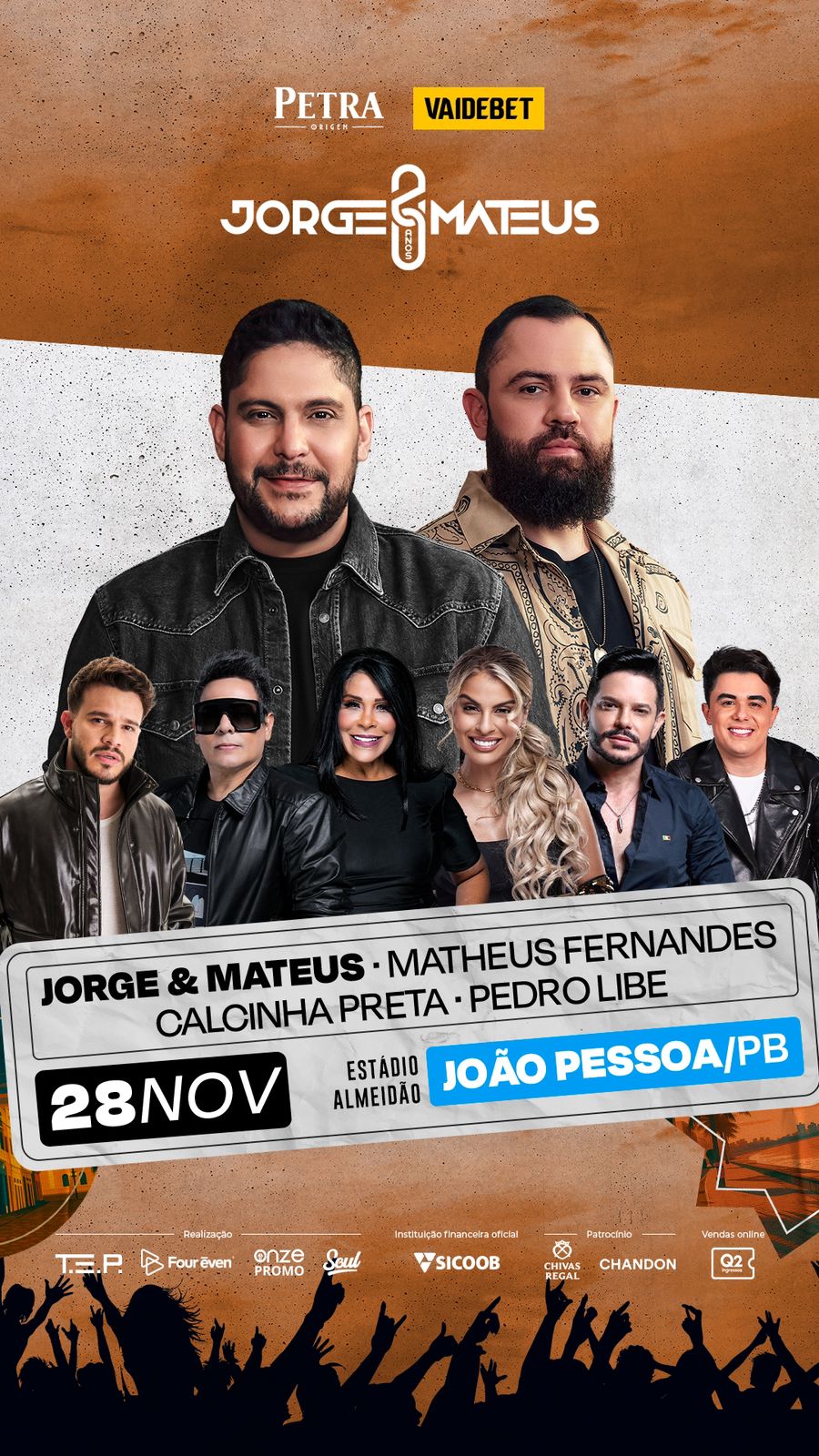 Além de Jorge & Mateus, o evento contará com apresentações de Pedro Libe, Matheus Fernandes e da banda Calcinha Preta, reunindo diferentes estilos e prometendo uma noite inesquecível para o público paraibano.